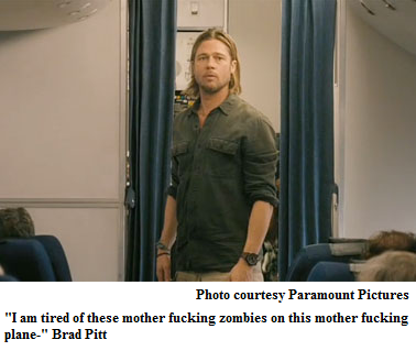 World War Z is at least mildly entertaining. We get to see zombie hordes on an unprecedented scale and a world going to a confused, panicky Hell. Large-scale scenes, like zombies on a plane, haven’t really been done before, and they capture the global feel the movie is going for.
