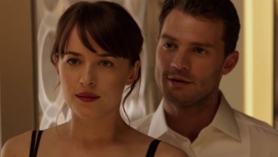 Fifty Shades Darker picks up where Fifty Shades of Grey left off — just after Ana Steele (Dakota Johnson) leaves Christian Grey (Jamie Dornan) because she can’t handle spanking. Grey quickly gets her back, promising to just date her and not make her sign some insane contract, and they have a relatively normal, happy relationship for the rest of the movie.