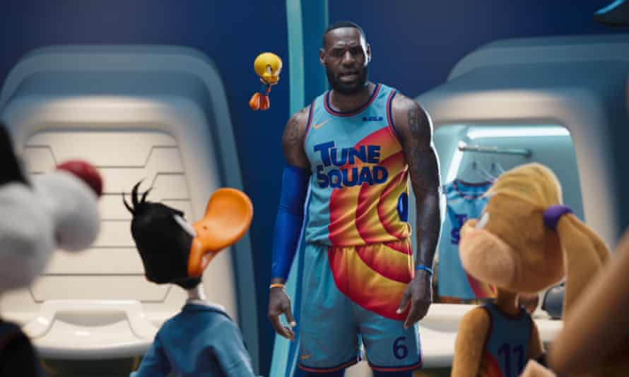 In Space Jam: A New Legacy, LeBron James (himself, also serving as producer) turns down a deal to be the spokesperson for Warner Bros.’ new multimedia platform, insulting the idea. In revenge, the algorithm who came up with it, anthropomorphized and self-styled as Al-G Rhythm (Don Cheadle), sucks him and his son Dom (a fictionalized version of LeBron’s youngest son, Bryce, played by Cedric Joe) into the studio’s universe of beloved media properties, which is literalized as a pocket solar system with different planets for Harry Potter and DC and Game of Thrones and so forth. The algorithm gives LeBron 24 hours to assemble a basketball team to defeat him, or promises to trap him and his son among WB’s star-studded lineup forever.