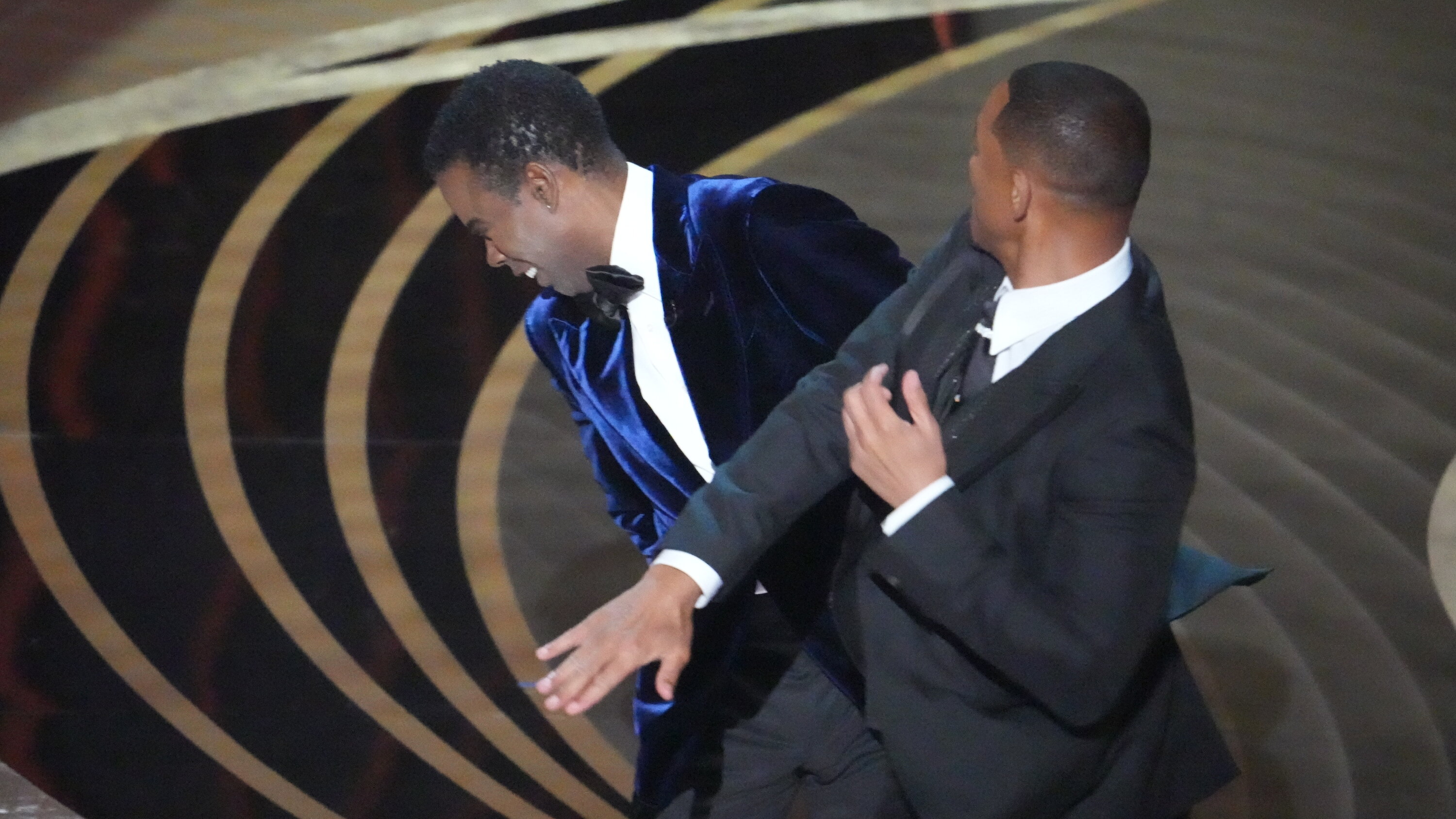 The highlight of the 94th Academy Awards ceremony last night had nothing to do with any award. As he was presenting the award for Best Documentary Feature, Chris Rock singled out Jada Pinkett Smith’s haircut and said he was looking forward to G.I. Jane 2. Her husband, superstar Will Smith, sitting with her in the front row as a Best Actor nominee, got out of his chair and slapped Rock in the face, then shouted curses at him after he sat back down.
