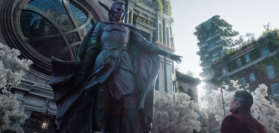 Manhattan- America Chavez (Xochitl Gomez), a girl who can move through parallel universes at will, crashes into Earth-616 pursued by a giant octopus demon. Stephen Strange, master of the mystic arts (Benedict Cumberbatch), saves her and kidnaps her for observation. He enlists the help of Wanda Maximoff (Elizabeth Olsen), who is coincidentally the best demon summoner he knows. Bit of a tactical error there. Maximoff uses The Necronomicon The Darkhold to pursue Chavez and Strange across the multiverse.