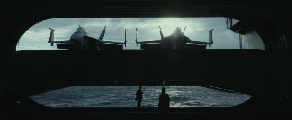 The only systemic change is replacing the original film’s sterile, slow-looking aerial stunts shot from miles away with this camera placement right next to the dogfights, and it’s tough to overstate how much of an improvement this really is. Immediately after watching Top Gun for the first time, I pulled up Star Wars in another tab to chase it down with that movie’s climax, one of the finest fighter sequences in cinematic history burned into my brain from childhood, because, for all its joys, the original Top Gun is desperately missing something like that. Maverick centers around a trench run leading to an impossibly narrow target remarkably similar to the assault on the Death Star that is so physically demanding that even training for it is dangerous, adding real stakes to every scene – the pilots’ lives are constantly in danger, and they’re facing that danger over California out of respect for the clear and present danger from, uhh, no one in particular.