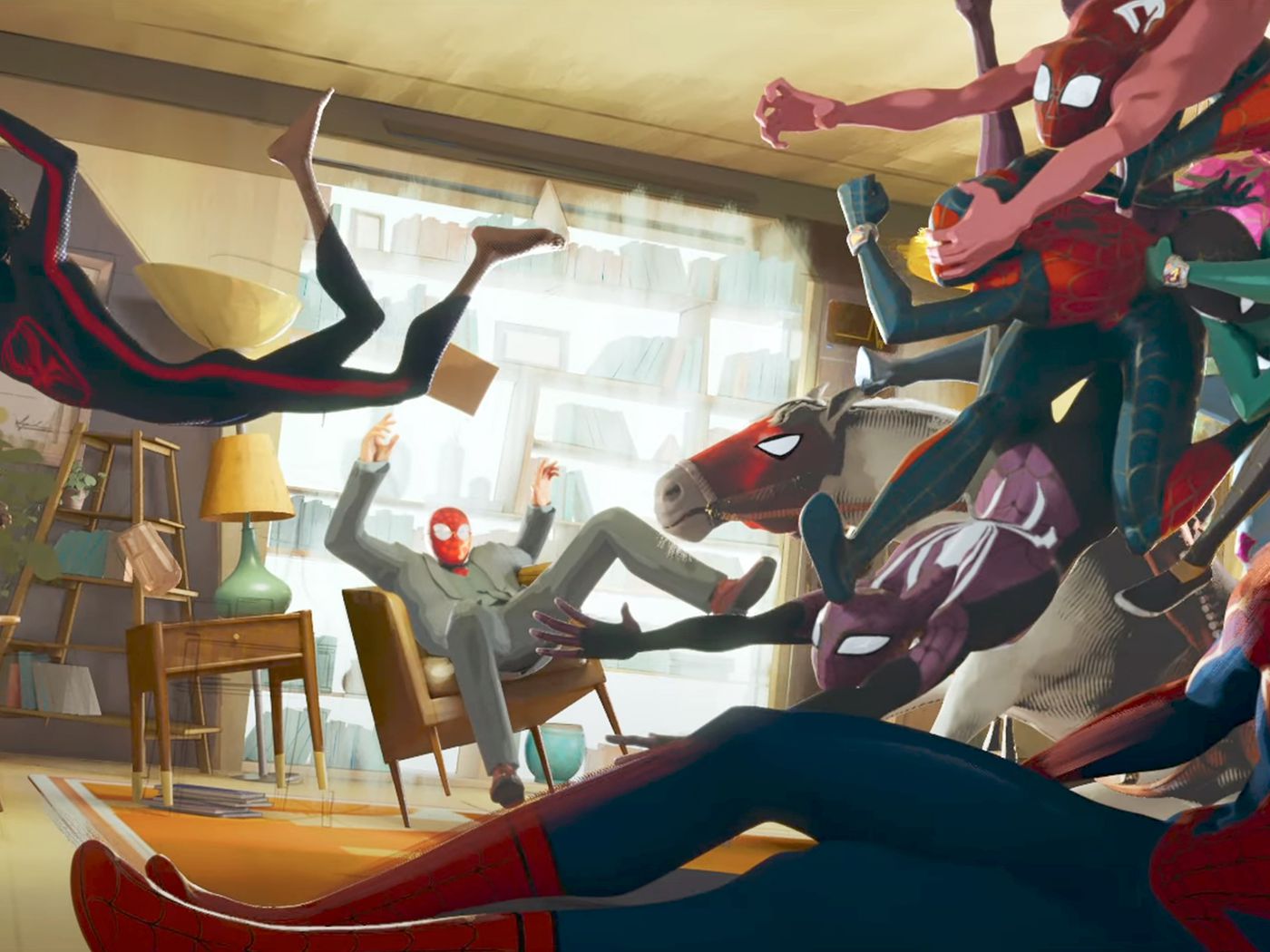 There’s plenty of applause breaks a-la No Way Home, with footage from live-action installments and meme moments. Footage from the exact same live-action movies and references to the exact same memes as No Way Home, actually. It’s a very shallow pool, and Sony, responsible for the Amazing Spider-Man debacle and still clearly expecting every spider-movie to be its last, has dove all the way into it twice in a row now.
