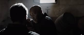 These themes erupt in the climax, when McCall, as death, bursts through a gorgeous stained glass mural of the Virgin Mother that decorates the don’s bedroom. Quaranta’s home is a maze of already-dead guards marbled in with his incredibly expensive nude sculptures, who seem to surround him like Caesar in his final moments.
