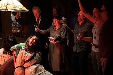 So the idea for this baffling scene is that The Exorcist: Believer is escalating the genre in the opposite direction, bringing in other religions instead of expanding the virtues of Catholicism, and it just doesn’t make any visual sense. It looks like band practice than any kind of religious ritual. The idea that this disjointed scatting of nulti-flavored religious nonsense, none of which is given any weight over the others, would have any kind of organized effect feels very silly. The film denies authority to any of the presented religions or explanations for what’s happening, and not in the fun way that the original film denies answers – Believer seems almost like it’s afraid to be seen as taking a viewpoint.