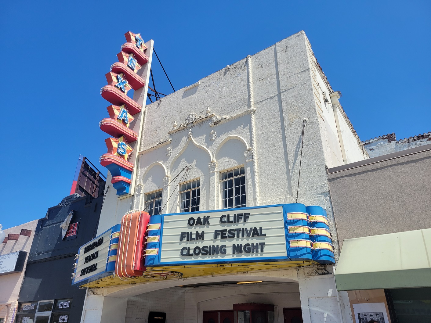 I wouldn’t get up early yesterday for morning yoga – the correct choice, I only got halfway through the session I attended – but I delayed publishing, which is dangerous, so I could make the 11:45 curtain of Videoheaven. This was also the correct choice. David Lowery, Green Knight and Ghost Story director and the most prominent Dallas filmmaker of the past several years, comes out to introduce the documentary. He’s on the Oak Cliff Film Society Board of Directors and has hosted events at the Texas before. It’s the only time I spot him all weekend, and he’s already out of the spotlight before I can get my phone turned back on for a picture.
