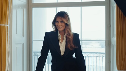 Scenes in this narrative with a foregone conclusion and no real conflict include Trump trying on clothes, talking about who introduced her to whom and singing along to “Billie Jean,” all scenes that last some minutes in this hollow experience. In one scene, Trump coordinates White House interior decorating with a Laotian immigrant, who describes the moment as her realizing the American Dream. Trump echoes this thought as she becomes First Lady for the second time, urging viewers in voiceover to fight for our rights.