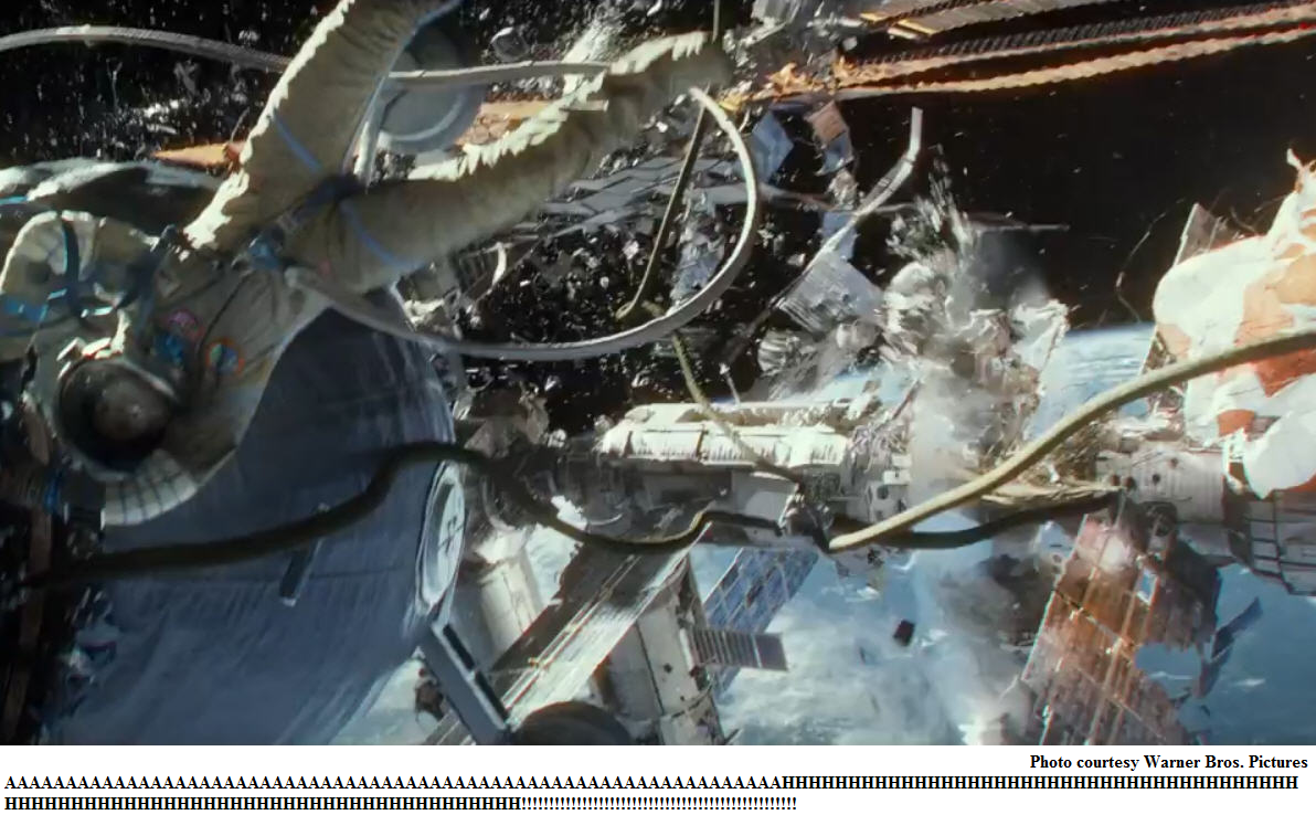 Gravity’s opening crawl is enough to tighten every sphincter in the audience, and for the next 90 minutes, there will be no relief.